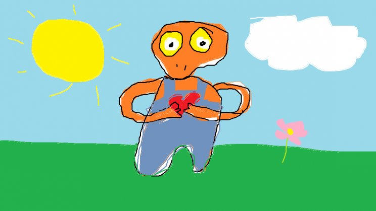 “The inspiration behind this mander comes from Ancient Krokotopian text, The Mander Who Loved. Back before Krokotopia was a desert world, it was lush with green grass and pink flowers. The Kroks had just arrived, and the Manders graciously greeted them. A certain Mander yearned for someone to spend Friendship Day with, so he pulled on his best pair of overalls, and stood with his heart open to take. Some say he’s still waiting for someone, but others think he found the perfect partner to spend his day with.”