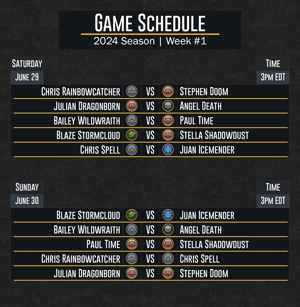 DuelCircle Competitive 2024 Week 1 Regular Season Schedule -July5Update Image published on: July 5, 2024 Image size: 1628 × 1667 px Image file name: DuelCircle-Competitive-2024-Week-1-Regular-Season-Schedule-July5Update.png