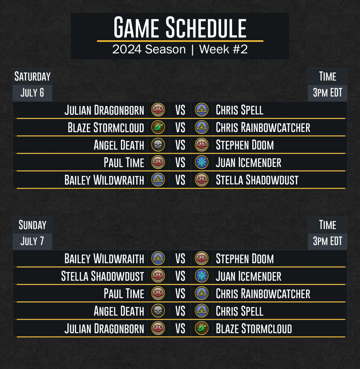 DuelCircle Competitive 2024 Week 2 Regular Season Schedule -July5Update Image published on: July 5, 2024 Image size: 1628 × 1667 px Image file name: DuelCircle-Competitive-2024-Week-2-Regular-Season-Schedule-July5Update.png