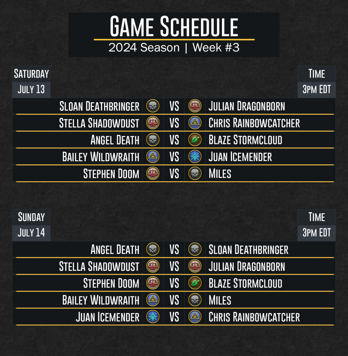 DuelCircle Competitive 2024 Week 3 Regular Season Schedule – July 15th Update Image published on: July 17, 2024 Image size: 1628 × 1667 px Image file name: DuelCircle-Competitive-2024-Week-3-Regular-Season-Schedule-July-15th-Update.png