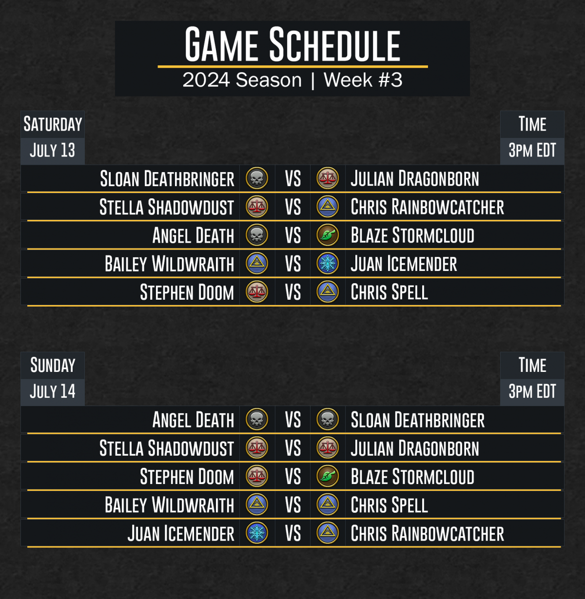 DuelCircle Competitive 2024 Week 3 Regular Season Schedule – July 6th Update Image published on: July 8, 2024 Image size: 1628 × 1667 px Image file name: DuelCircle-Competitive-2024-Week-3-Regular-Season-Schedule-July-6th-Update.png