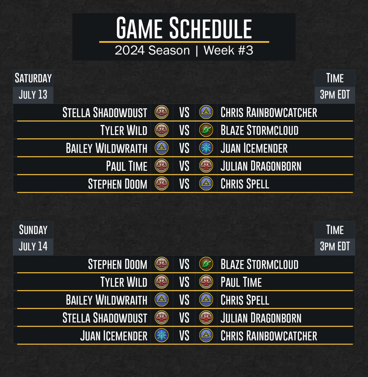 DuelCircle Competitive 2024 Week 3 Regular Season Schedule-Updated Image published on: June 25, 2024 Image size: 1628 × 1667 px Image file name: DuelCircle-Competitive-2024-Week-3-Regular-Season-Schedule-Updated.png