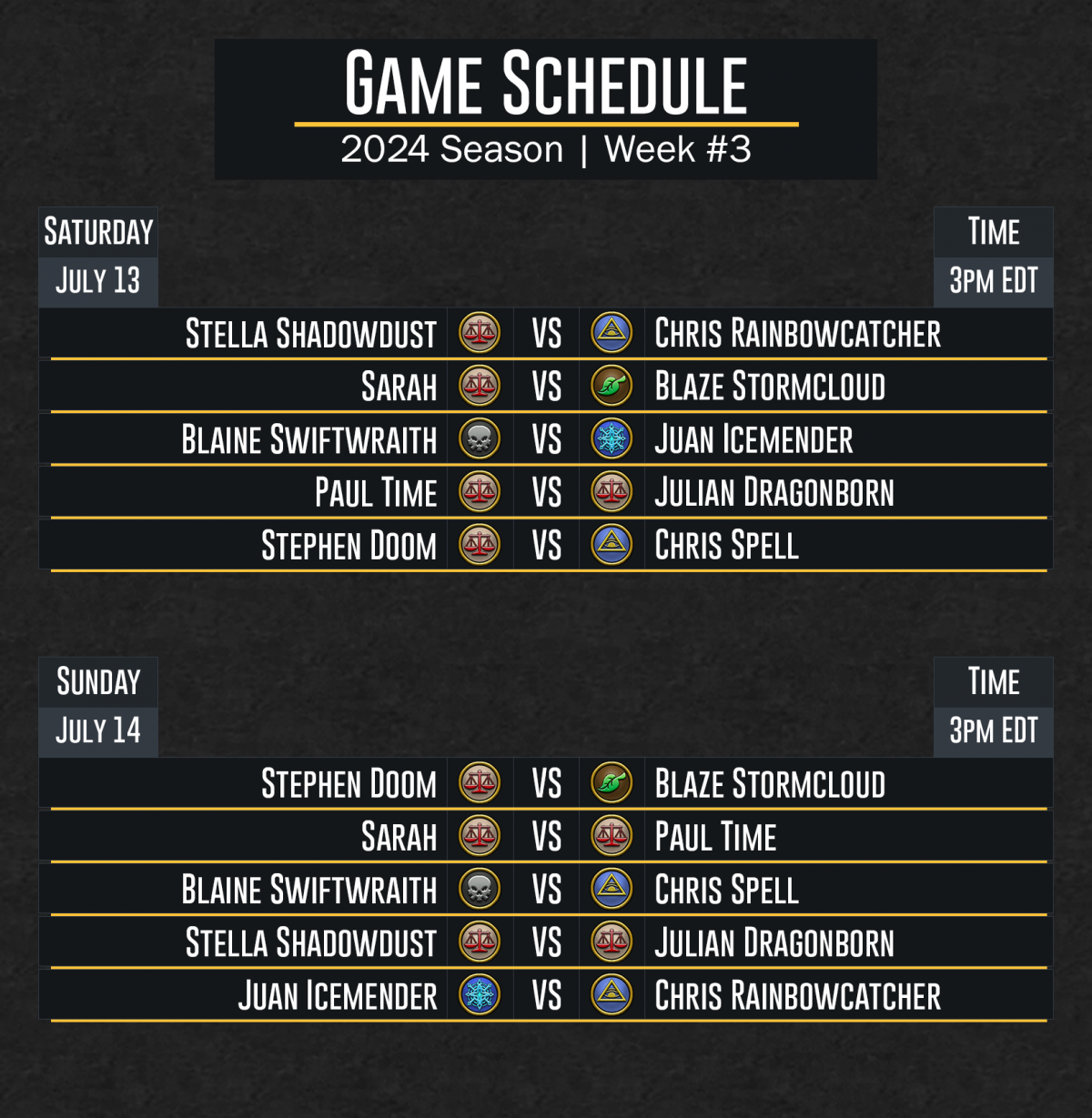 DuelCircle Competitive 2024 Week 3 Regular Season Schedule Image published on: June 21, 2024 Image size: 1628 × 1667 px Image file name: DuelCircle-Competitive-2024-Week-3-Regular-Season-Schedule.png
