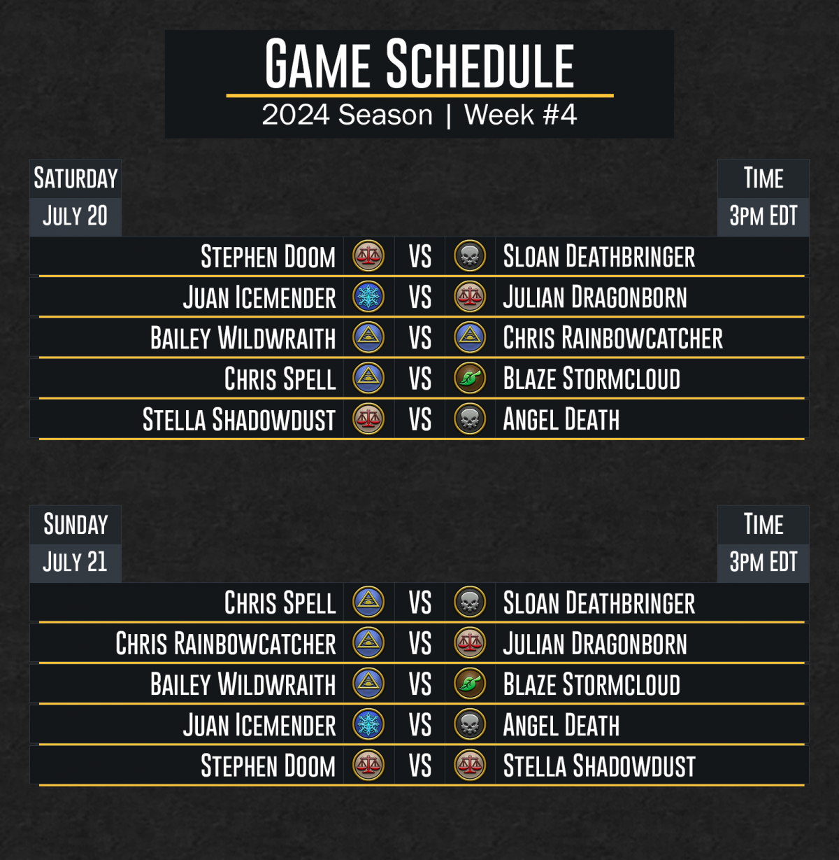 DuelCircle Competitive 2024 Week 4 Regular Season Schedule – July 6th Update Image published on: July 8, 2024 Image size: 1628 × 1667 px Image file name: DuelCircle-Competitive-2024-Week-4-Regular-Season-Schedule-July-6th-Update.png