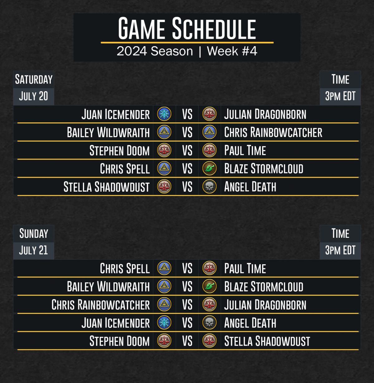 DuelCircle Competitive 2024 Week 4 Regular Season Schedule -July5Update Image published on: July 5, 2024 Image size: 1628 × 1667 px Image file name: DuelCircle-Competitive-2024-Week-4-Regular-Season-Schedule-July5Update.png
