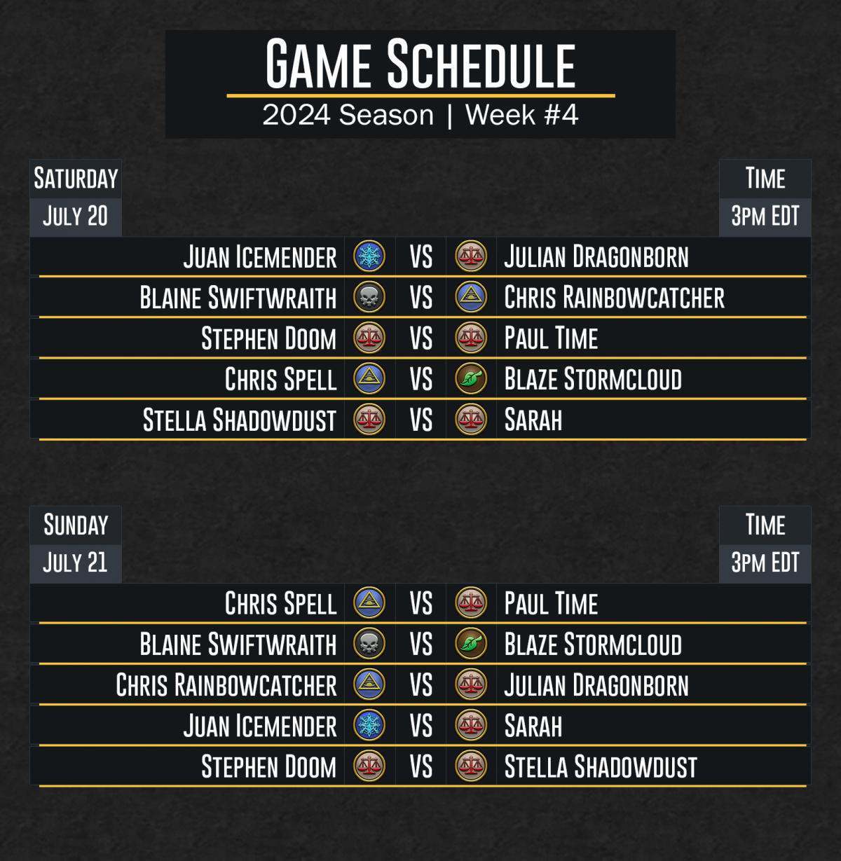 DuelCircle Competitive 2024 Week 4 Regular Season Schedule Image published on: June 21, 2024 Image size: 1628 × 1667 px Image file name: DuelCircle-Competitive-2024-Week-4-Regular-Season-Schedule.png