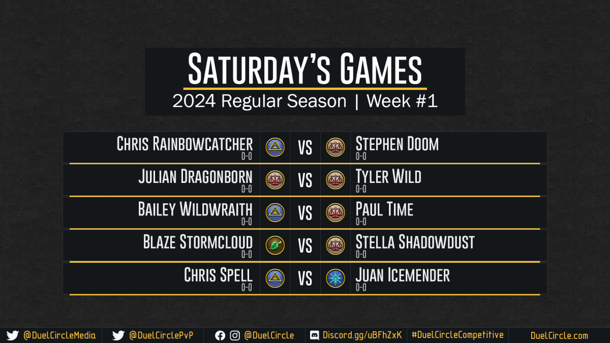 DuelCircle Competitive – Week 1 Saturday TodayTomorrowGames-Updated Image published on: June 25, 2024 Image size: 1920 × 1080 px Image file name: DuelCircle-Competitive-Week-1-Saturday-TodayTomorrowGames-Updated.png