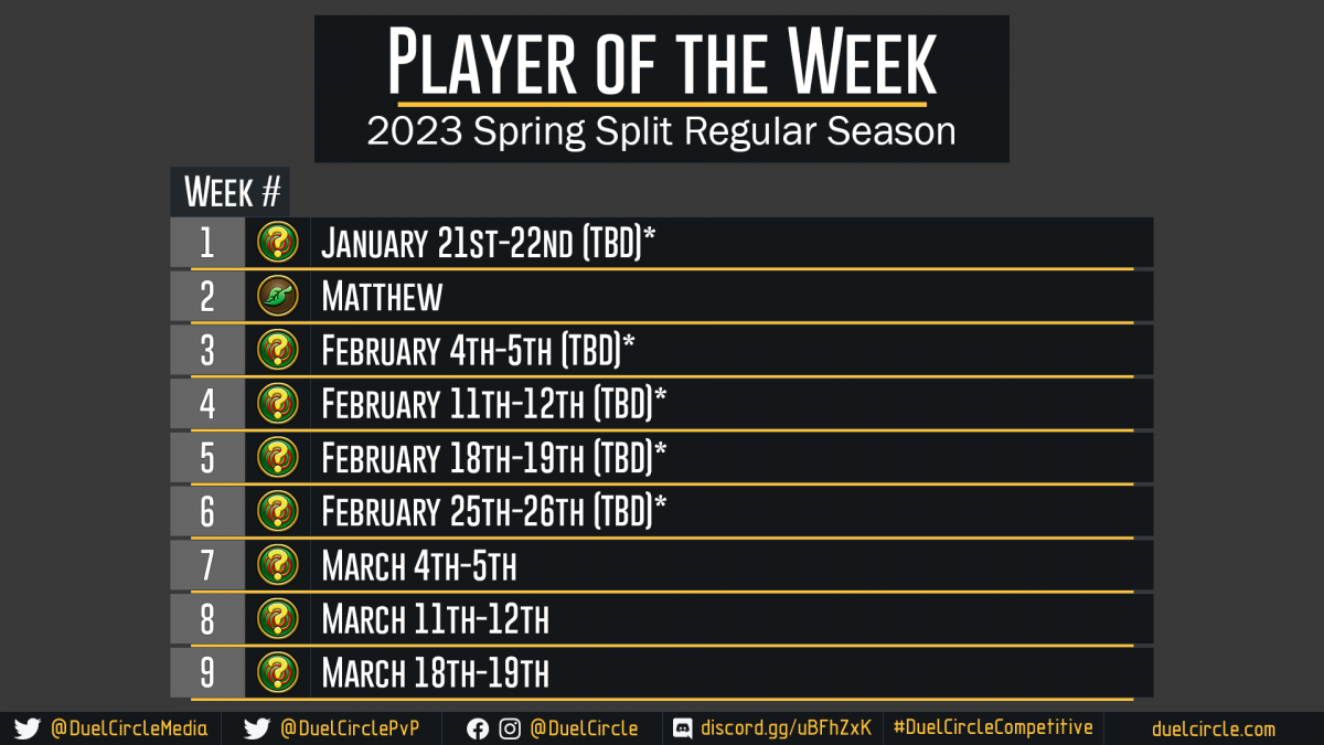 Player of the Week – Spring 2023 Image published on: March 4, 2023 Image size: 1920 × 1080 px Image file name: Player-of-the-Week-Spring-2023.png