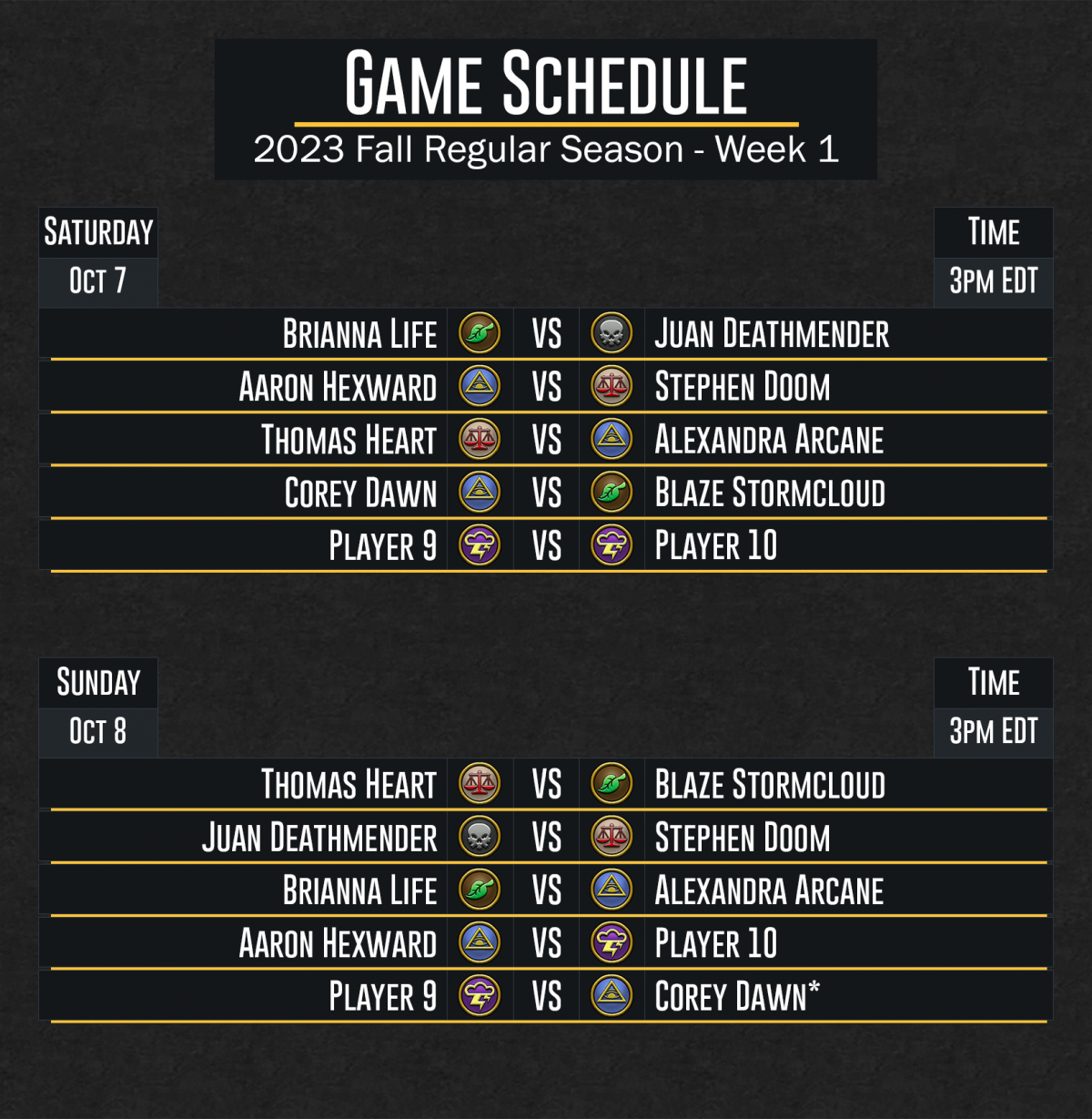PrelimWeek1Fall-DuelCircleCompetitive2023 Image published on: October 2, 2023 Image size: 1628 × 1667 px Image file name: PrelimWeek1Fall-DuelCircleCompetitive2023.png