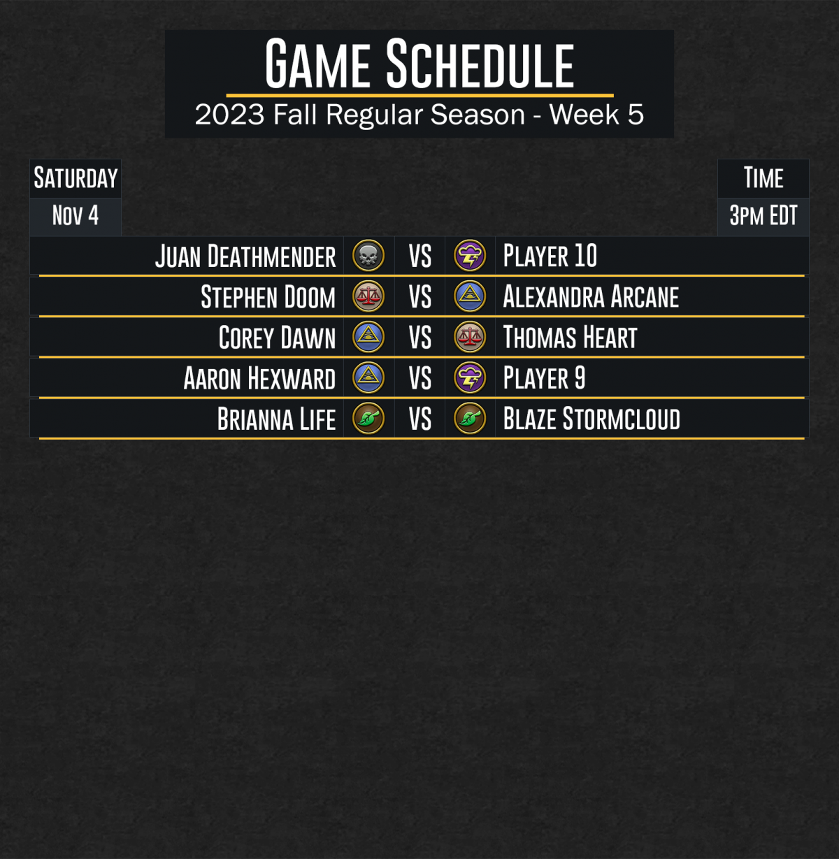 PrelimWeek5Fall-DuelCircleCompetitive2023 Image published on: October 2, 2023 Image size: 1628 × 1667 px Image file name: PrelimWeek5Fall-DuelCircleCompetitive2023.png