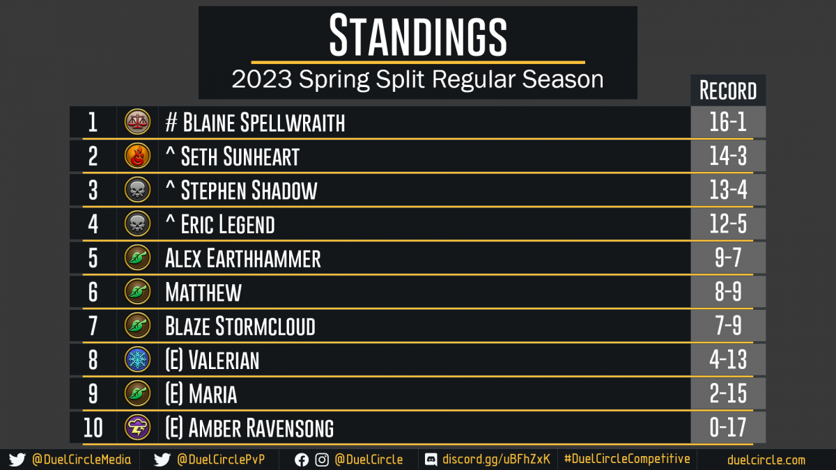 Week9SaturdayBPostgameRegular Season Standings – Spring 2023 Image published on: March 19, 2023 Image size: 1920 × 1080 px Image file name: Week9SaturdayBPostgameRegular-Season-Standings-Spring-2023.png